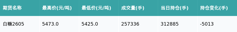 南财智讯3月27日电,盘后期货数据显示,郑州商品交易所的白糖主力合约收涨0.46%,收盘报5464.0元/吨,日内资金流出3248.78万元。其他相关指标见下表: